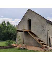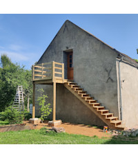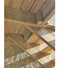 Chêne massif 80 m/m. Piétement 150 mm. Usinage manuel des plateaux. Usinage CNC du piètement en C. Poids 120 kg.