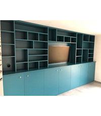 Bois de Noyer, de Chêne et de Merisier associés à divers stratifiés de la gamme Egger.